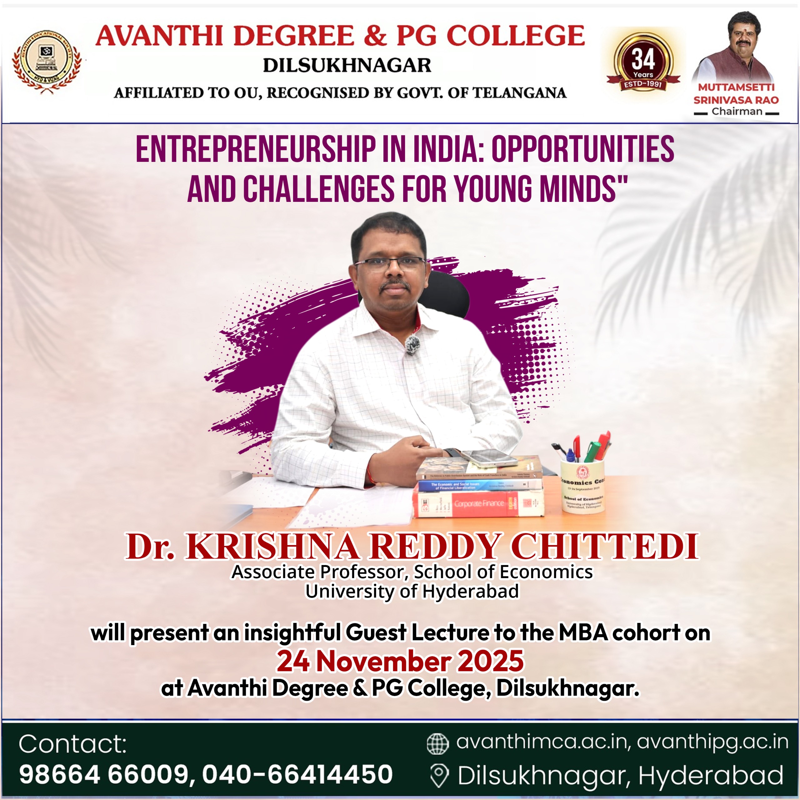 Guest lecture by Dr. Krishna Reddy Chittedi on Entrepreneurship in India- Opportunities and Challenges for young minds on 24th November 2025